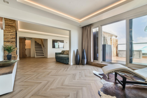 wandafwerking, dimbare inbouwverlichting en een PVC-vloer met vloerverwarming én -